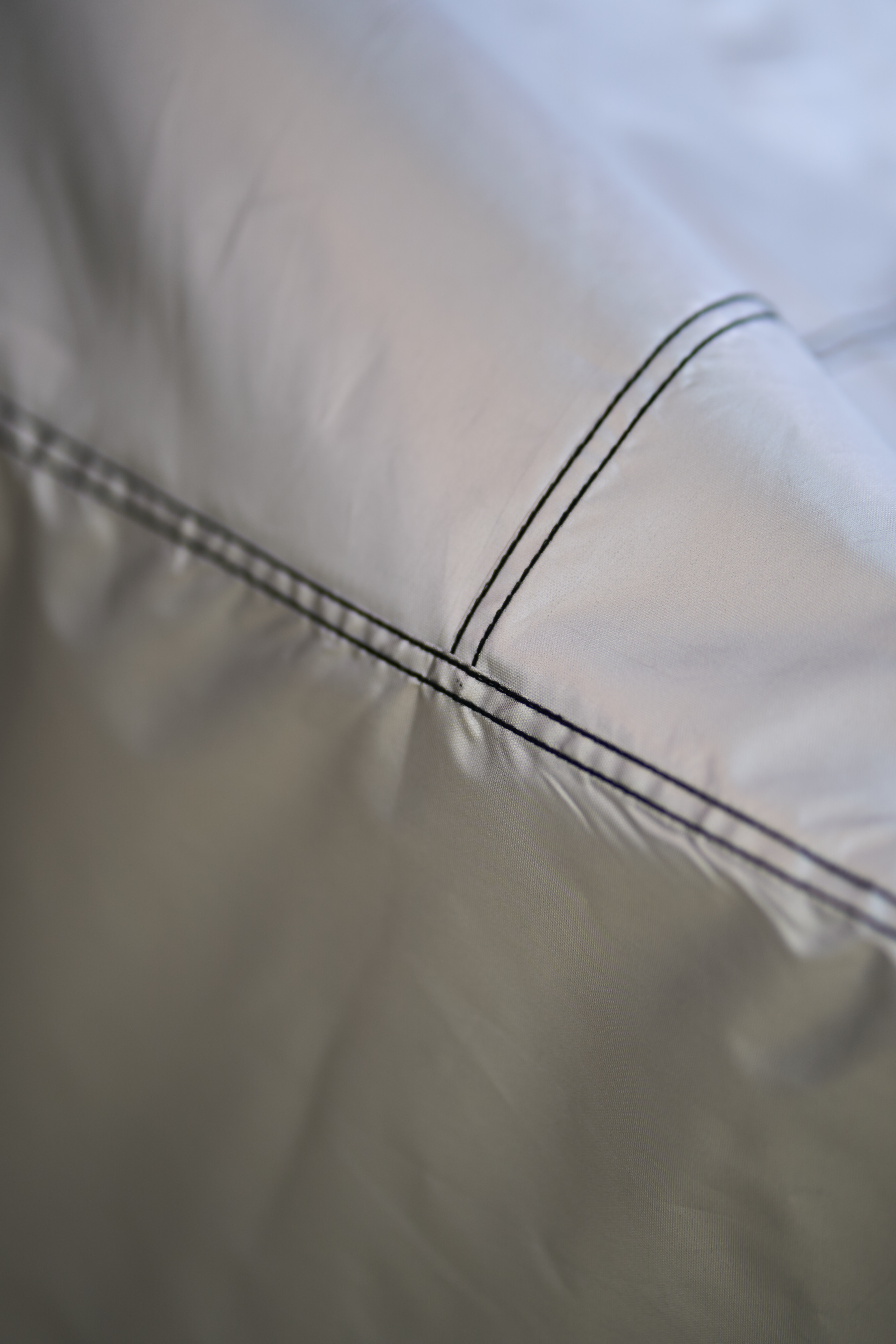 При одевании чехла лучше добиваться натяжения ткани, чтобы вода скатывлась. Но даже если натяжение ослабнет и образуются углубления, где будет скапливаться вода, водонепроницаемая мембрана не пропускает воду, а через швы ей не даст просочиться гидроизоляционный скотч. Теперь не надо постоянно убирать подушки с кресел!