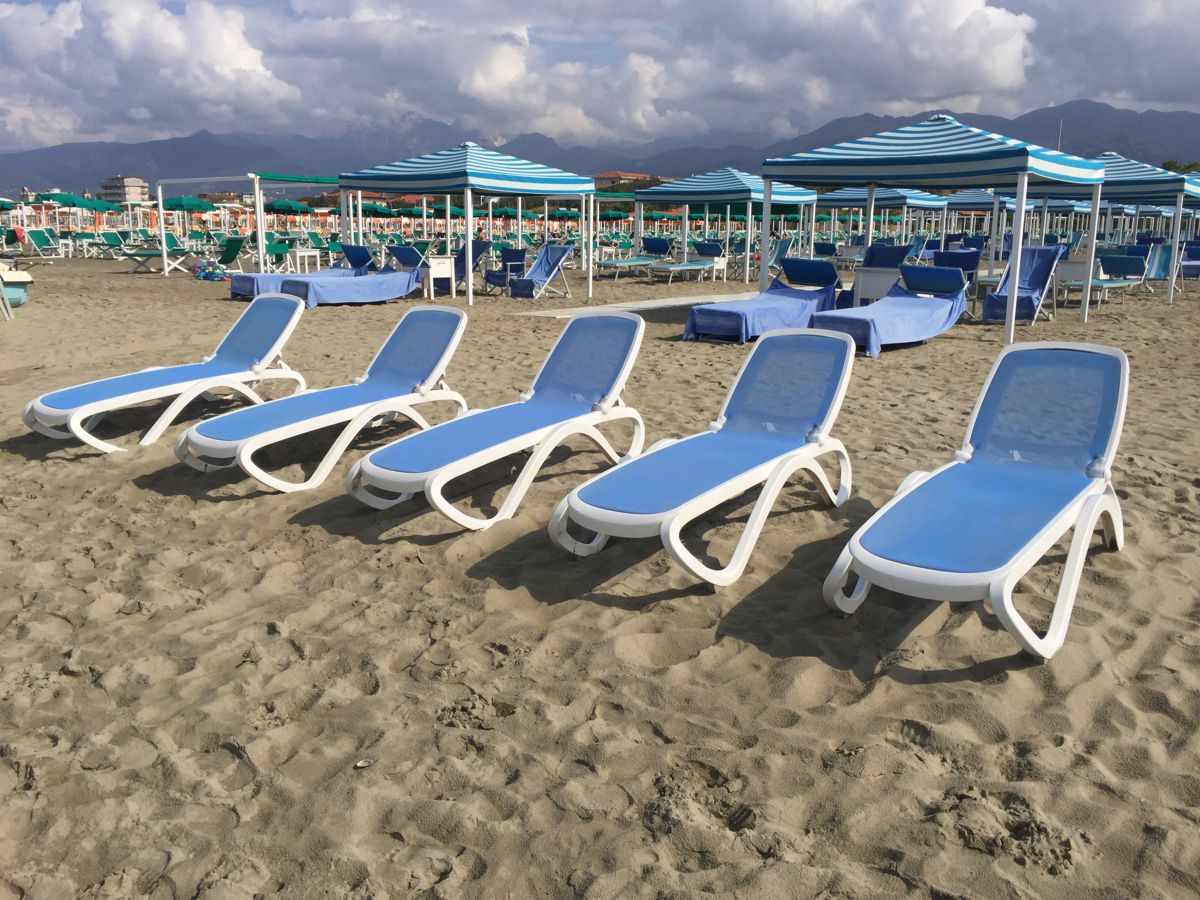 Шезлонг Omega Blue, от производителя Nardi - это хорошо зарекомендовавший себя как на зарубежных, так и на российских пляжах, крепкий, прочный и надежный. Его универсальный дизайн, с продуманной обтекаемой формой, которая убережет гостей от травм, очень зарекомендовала себя на рынке. Натянутая ткань, в основной зоне использования - это специально разработанная ткань, устойчивая к выгорания, гниению и устойчива к грязи. Шезлонг разработанный специально для коммерческих целей, где высокая проходимость посетителей и с возможностью использования спинки в нескольких положениях. Этот шезлонг использовать решили в двух цветах, с синей тканью и с бежевой. Посмотрим, какой себя покажет с лучшей стороны.